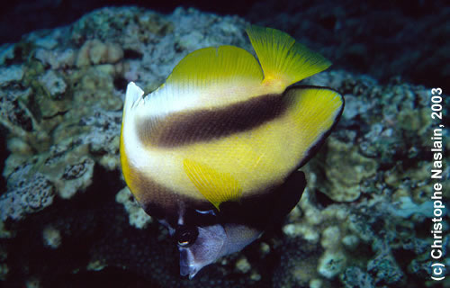 Species : Red Sea bannerfish (Heniochus intermedius)